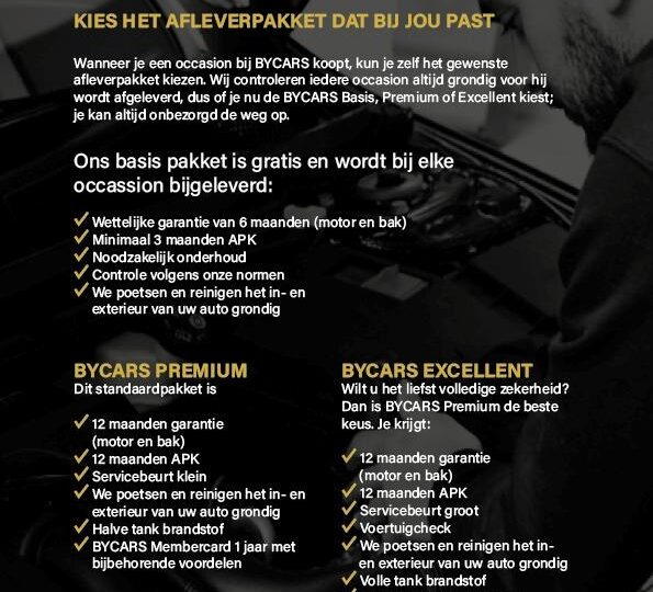 - Basispakket (inbegrepen): Dit afleverpakket bevat: Geldige APK, RDW-leges, Wettelijke garantie
